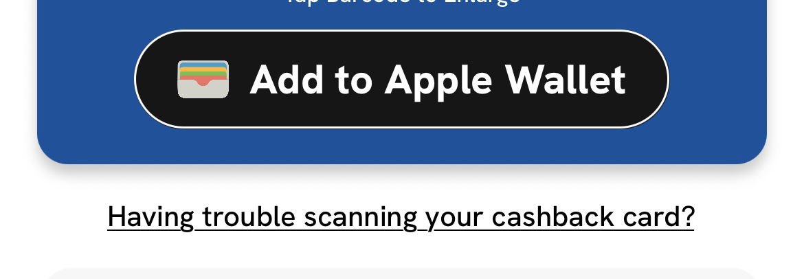 If the QR code isn't scanning properly, tap "Having trouble scanning your cashback card?" just underneath the barcode. This will take you directly to your cashback card instead.